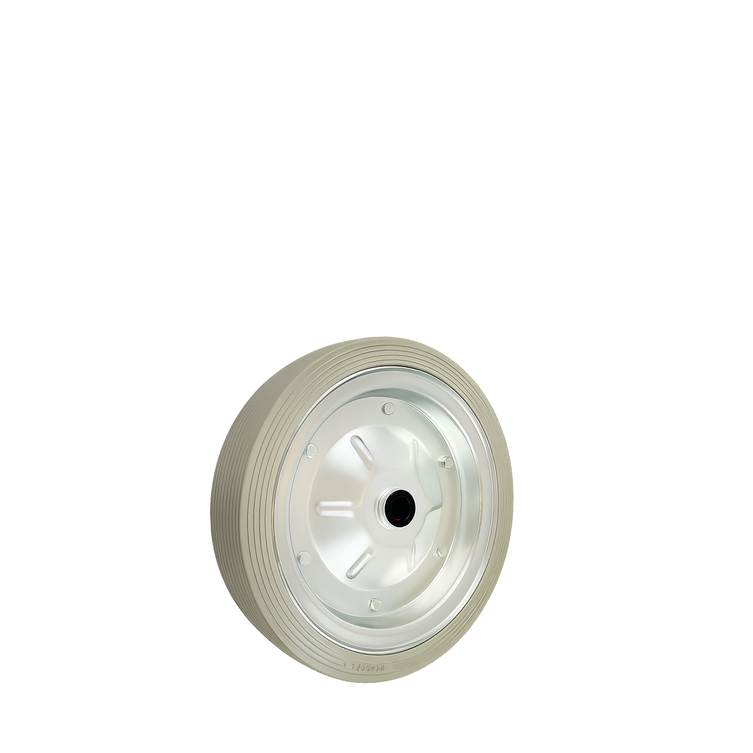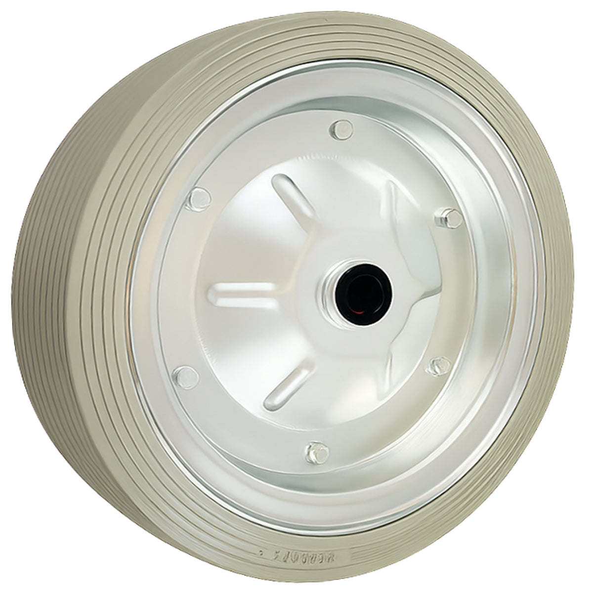 Vollgummibereifung auf verzinkter Stahlfelge – stoßfest, vibrationsdämpfend und korrosionsbeständig.
